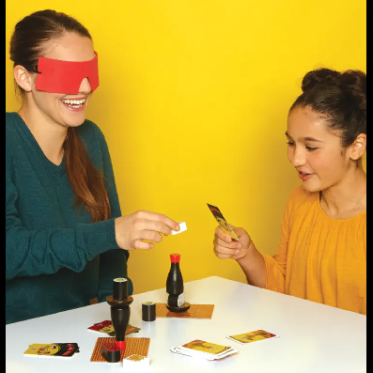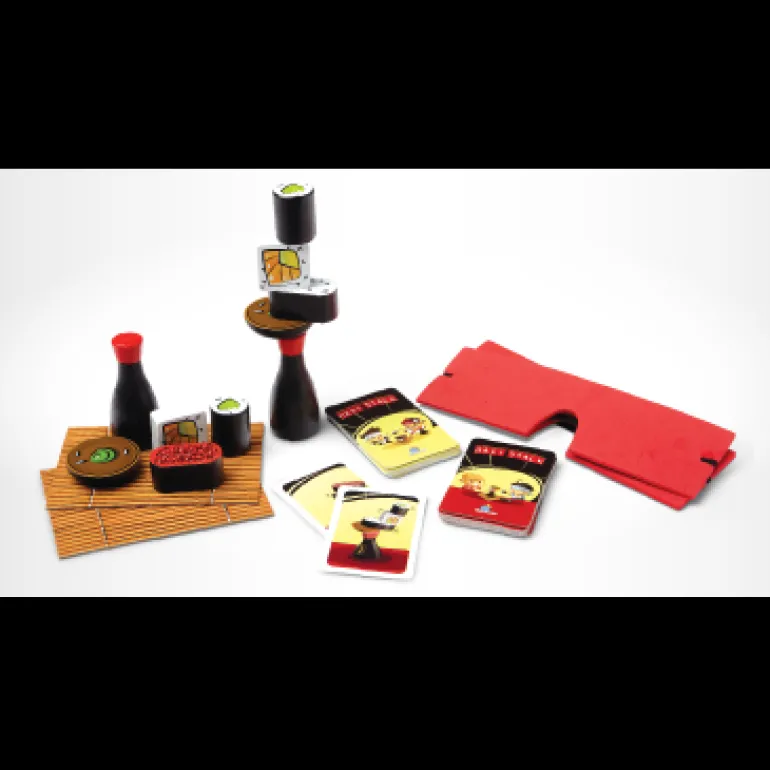 Order’s up- it’s time for a sushi showdown! Put on your mask and grab your teammate, or prepare to use your fingers as chopsticks. Balance and arrange the sushi, plates, and soy sauce bottles, and make sure to execute the order exactly as shown on the card. But be careful, one wrong move and everything might tumble over! Race a friend or challenge as a team in this sushi stacking extravaganza. High-quality wooden pieces and crazy stacking combinations make Maki Stack perfect for a game night full of fun and laughs.