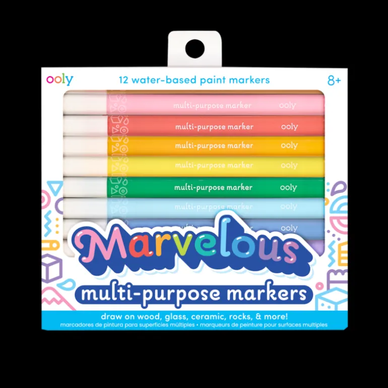Marvelous Multi-Purpose Paint Markers give you plenty of creating options. Add color to a variety of surfaces with water based paint markers in 12 radiant colors. Paint the world!