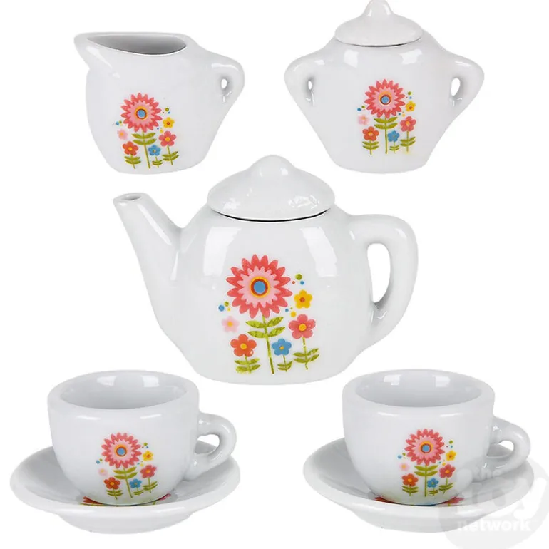 This mini porcelain tea set is perfect for tea time with your mini friends! The 9 piece tea set has a flowery pattern on each piece. Your tea party will be complete with a set of 2 plates, 2 cups, a container for milk and sugar and one tea pot.