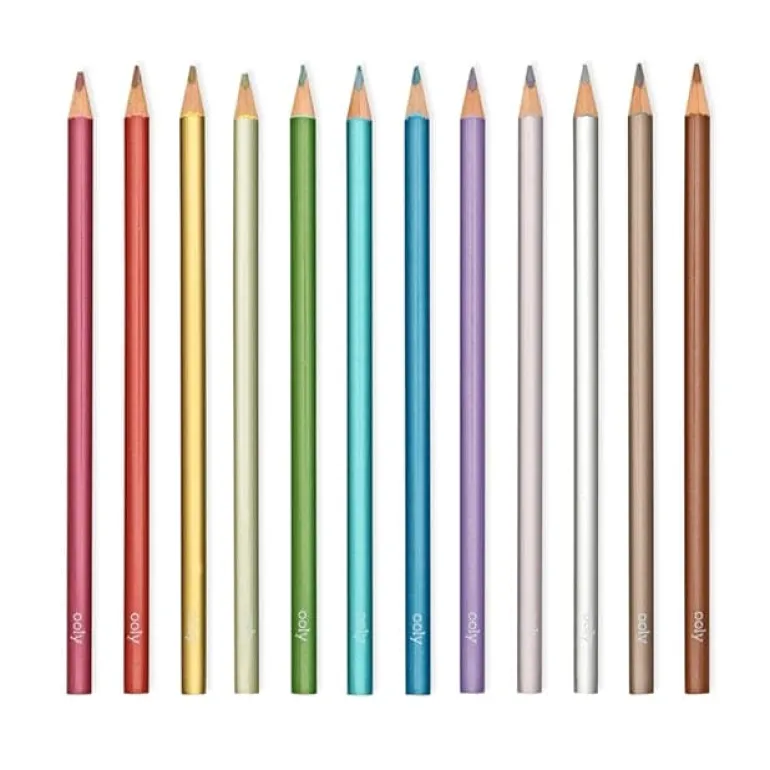 Bring a modern look to your coloring projects with Modern Metallics Colored Pencils. This colored pencil set features 12 unique colors that’ll leave a glistening sheen that can make your coloring truly distinct. Try mixing metallic colors together for even more interesting hues. You can also make elements in your coloring books stand out by mixing metallic colors with classic ones. Modern Metallics have triangular shaped barrels that make a great ergonomic fit for easy coloring; and roll-away pencils will be a thing of the past.