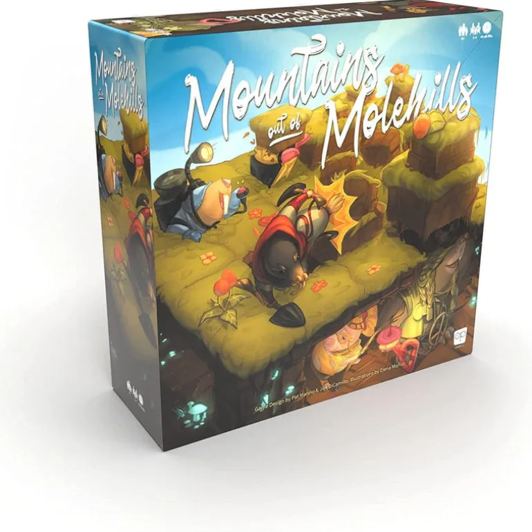 It’s time for the annual Mountain Maker tournament and moles have all gathered to prove their skills are the best. Plan, dig, and push your way to victory in Mountains Out Of Molehills, a highly addictive strategy game that plays across a unique two-level gameboard – an ‘underground’ area where players move their mole characters and an ‘above ground’ area for the molehills to pop up after movement.