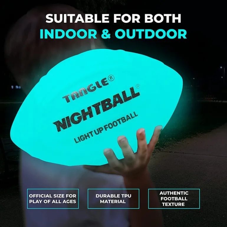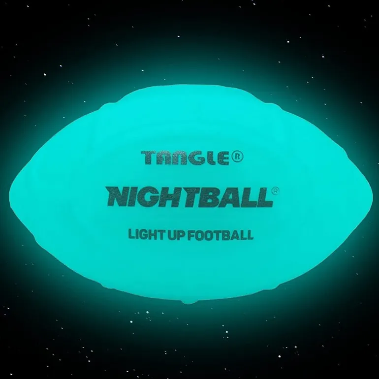 GLOW IN THE DARK FOOTBALL: Nightball LED Football lights this football up to enable throwing and catching at night! The Bright LEDS are included inside the ball and provide a bringht football to play at any time of day! This Nightball Football is perfect for a backyard football game or at a bbq at night!