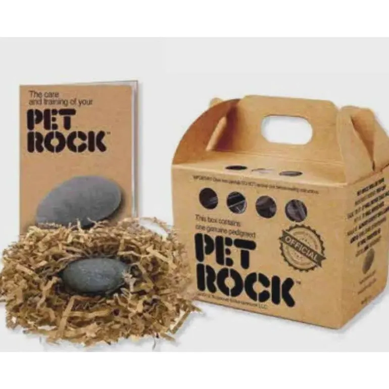 The Original Pet Rock is back and ready to rock your world and a whole new generation of fans! Pet Rock is the only pet you’ll own that you will never need to feed, walk, bathe, groom or neuter! Pre-trained to “sit” and “stay”! Best of all your Pet Rock is the only pet that will never run away!