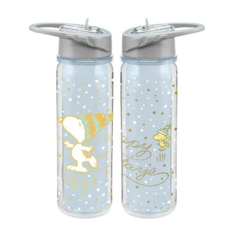 Peanuts Snoopy Happy Holidays 16 oz. Water Bottle is a BPA-Free, reusable and recyclable water bottles with insulated double wall design and spill-proof sport lid with straw.
