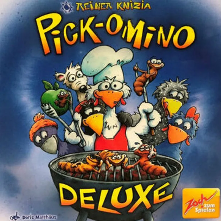 Two to seven players, ages 8 and up try to obtain fried worms for their chickens, so that they don’t go hungry. Of course, anyone who doesn’t manage to grab a worm off of the grill can help themselves to those of his opponents. This fast-paced game by Reiner Knizia is like Hick Hack im Gackelwack, a gambling game in the finest chicken tradition.