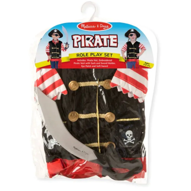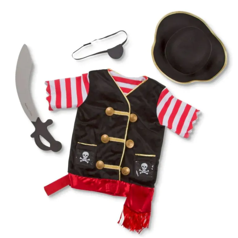 Ahoy, young buccaneers! Ready for swashbuckling adventure? This Pirate Role Play Dress-up Costume Set is here to make sure your kids look the part, with everything from a jacket and eye patch to a pirate sword and hat. Made with high-quality materials, it’s designed for multiple wearings and playtimes — plus it’s easy to clean. Arrr-right! Sized to fit kids 3 to 6.