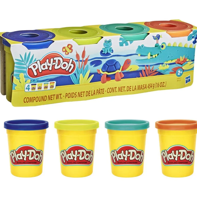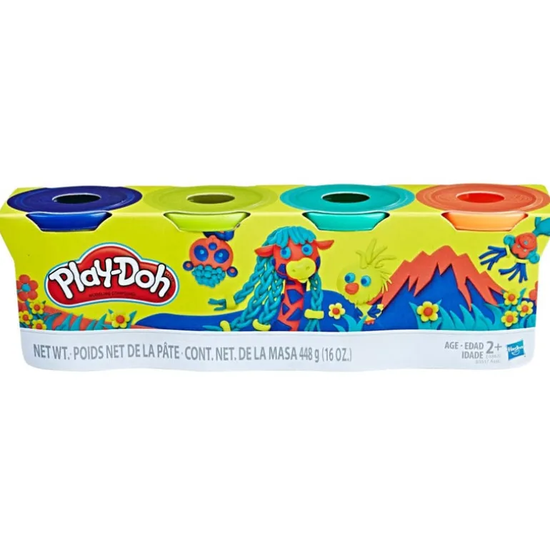 Squish up some fun with the essential Play-Doh 4 pack of colors! These 4 large four-ounce cans are great for all kinds of creative play including gifts, activities, classroom projects, or to refill any Play-Doh color collection. The 4-pack of colors also works well with any Play-Doh toolset or playset (sold separately). Each 4-pack sold separately.