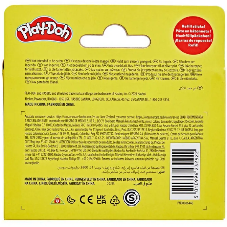 Use the Play-Doh Essential Colors 10 Pack to refresh and refill your Play-Doh collection! With 10 individually wrapped sticks in vibrant, classic colors, kids can imagine lots of wacky, wonderful, completely unique Play-Doh creations! Boys and girls ages 2 and up who love fidget toys or sensory toys will love squishing and shaping the Play-Doh compound. Once they’re opened, store the sticks in Play-Doh cans you already have or in airtight containers. Great as travel toys, classroom incentives, or kids party favors!