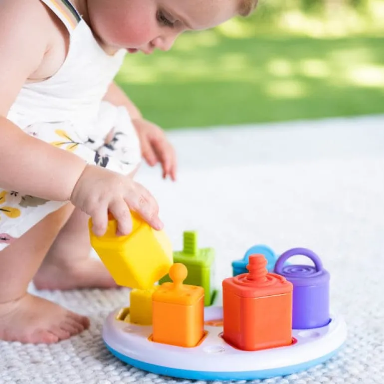 - Encourages fine motor skills, sensory learning, spatial reasoning, shape-matching, exploration