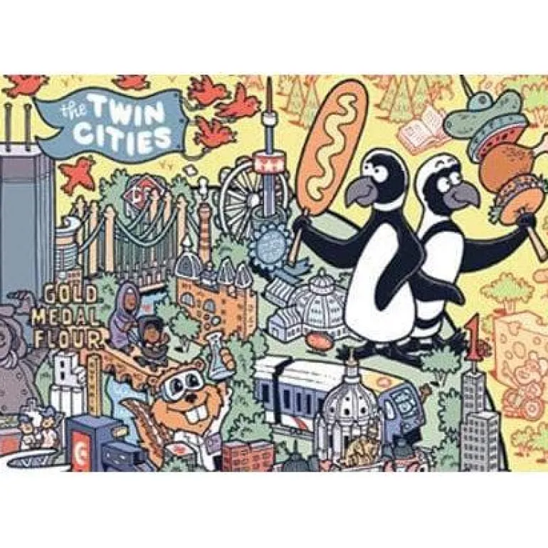 Born and raised in St. Louis Park, Kevin’s art career began at a very early age, drawing with Mr. Sketch markers. He studied studio art at Grinnell College in Iowa and resettled in Minneapolis after short stints in London and Manhattan. With 50 twists – this puzzle is sure to have you discovering new places throughout the North Star State.