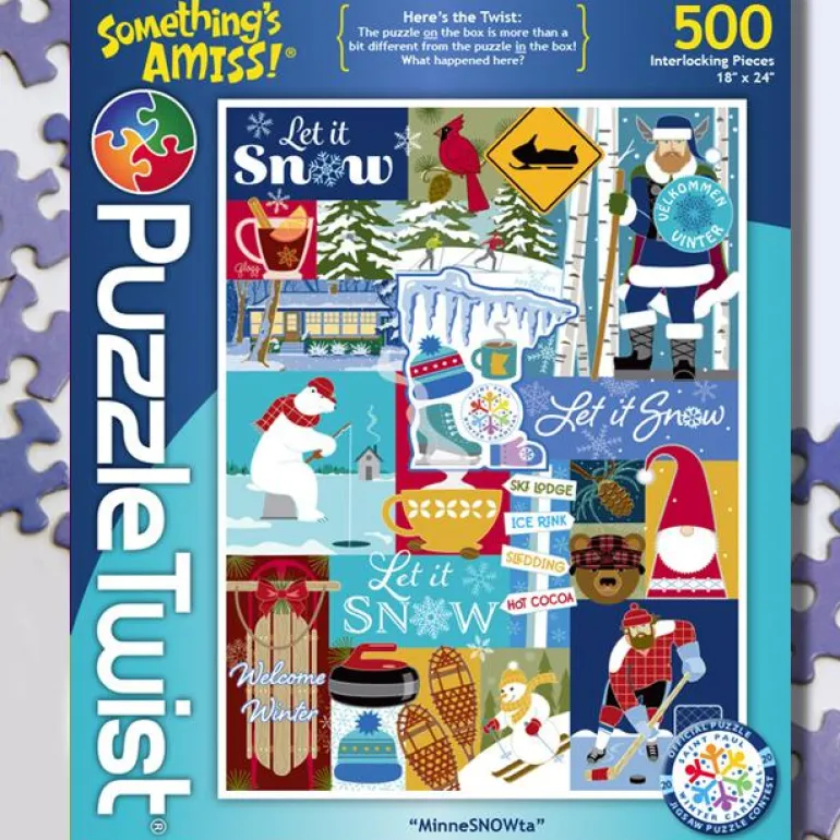 A jigsaw puzzle that takes a fun view of what hearty Minnesotans love about winters in the North.