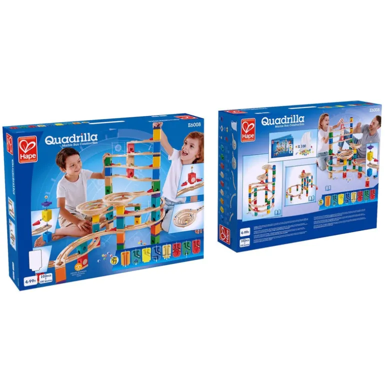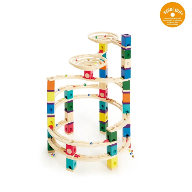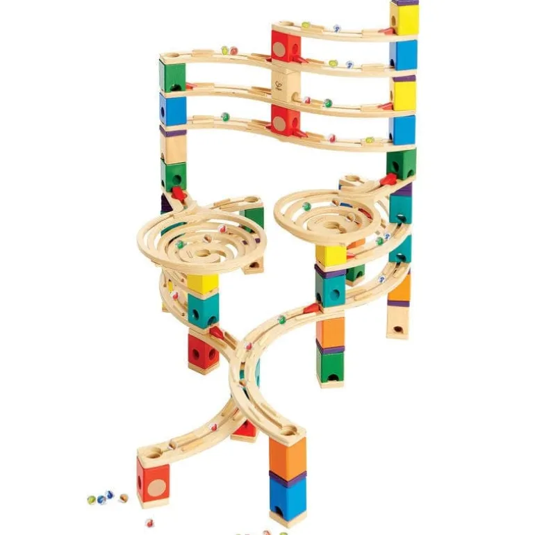 The Ultimate is the largest Quadrilla set. Two spiraling funnels, 12 curved rails, and 10 power-boosting accelerators inspire builders to design the ultimate marble run. STEM