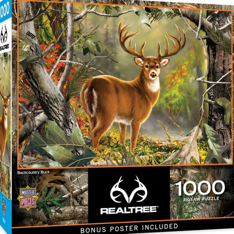 These MasterPieces 19.25″ x 26.75″ 1000pc Realtree Puzzle of Backcountry Buck features a gorgeous view of a buck and his huge rack and strong stance glaring into the woods. This was beautifully painted by artist, Dona Gelsinger. Gelsinger is inspired by the natural beauty and abundant wildlife throughout her hometown in the Rogue River Valley of Southern Oregon. She brings nature to life with her keen eye and practiced strokes, making you feel as if you’re right there, taking a peek at nature’s most magnificent creatures.