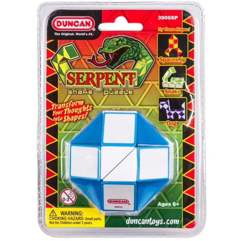 Duncan Serpent Snake Puzzle is a twistable challenge of unlimited puzzle shapes. Start twisting and let your imagination transform your thoughts into shapes. Turn a ball into a triangle. A snake into a shapes. Turn a ball into a triangle. A snake into a dog. Use your own creativity to make your new shapes!
