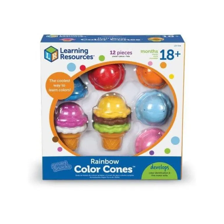 Fine Motor- Two handed play, whole hand grasp and visual-motor skills are enhanced when stacking and un-stacking ice cream flavors.