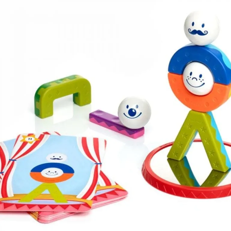With 6 different geometric building blocks, and 3 metal balls each with a different face; little ones will love creating the coolest looking acrobatic structures!