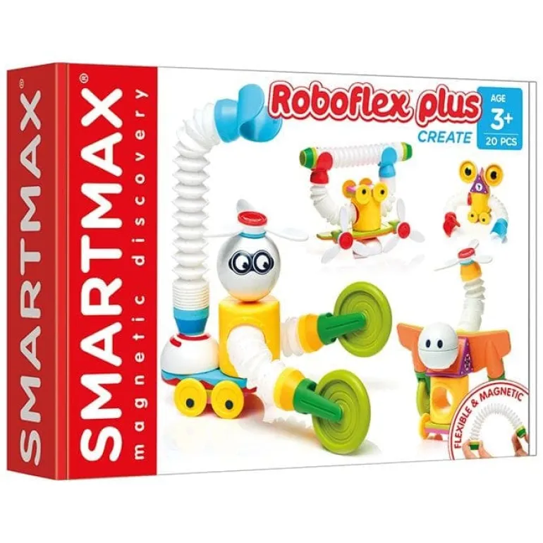 Create even more robots with Roboflex Plus! Get creative and make your own colourful, crazy robofriends. The new, flexible, extendable magnetic bars add an extra dimension to the SmartMax playset. Choose your parts, bend, extend, assemble, and play! Will your robot fly, jump, grab, wobble, or drive? The twenty-piece set including inspirational poster helps develop fine motor skills and stimulates fantasy. Roboflex Plus works and can be combined with all other SmartMax sets. Are you ready to meet these flexible friends?