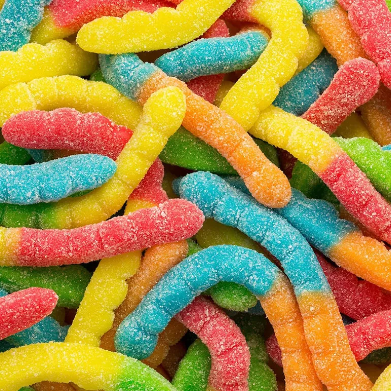 Pucker up for a sour take on our sweet Gummi Worms. Each Sour Gummi Worm is dusted with a sour coating giving it a tart bite.
