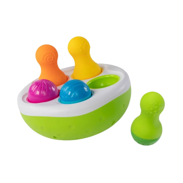 Each of the five colorful pins features fascinating textures to feel plus a weighted base that wobbles wonderfully.