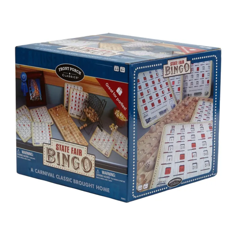 With the State Fair bingo game you can introduce a whole new generation to all the excitement of bingo night. This set is perfect for running sessions at home with friends and family, or at events. Whether you are playing for fun or for prizes, this bingo game set will provide hours of entertainment. This classic bingo game contains a traditional metal spinner cage to make calling those random numbers easier. It also comes with 77 wooden bingo balls for added authenticity.