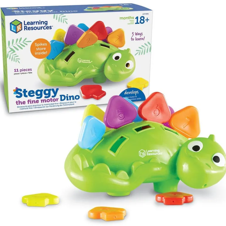 This prehistoric pal is ready for fine motor fun! Kids build the hand strength they need to succeed in school and beyond every time they play with Steggy the Fine Motor Dino. The friendliest fine motor toy for toddlers, this easygoing dinosaur comes with 10 pinchable, pullable scales, whose indented surfaces make it easy for kids to build their pincer grasp, hand strength, and other essentials of fine motor skills development. Steggy’s scales also come with a 3-in-1 learning surprise— in addition to building fine motor skills, scales also introduce kids to early color matching and number recognition skills thanks to their vibrant designs and 1–10 numbered surfaces. Count up the scales, sort them into warm and cool colors, and more— with Steggy the Fine Motor Dino, there are always multiple ways to learn. When the fine motor fun is finished for the day, Steggy’s durable plastic scales wipe clean and fit inside for easy storage.