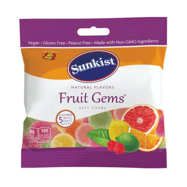 Sunkist® Fruit Gems® are made with non-GMO ingredients, colors from natural sources and five intense fruit juice flavors including Orange, Lemon, Pink Grapefruit, Raspberry and Lime. Each gem tastes so fresh and juicy you’ll think you’re biting into the real thing.