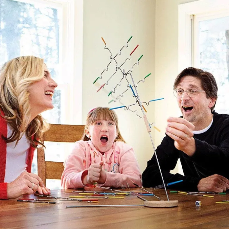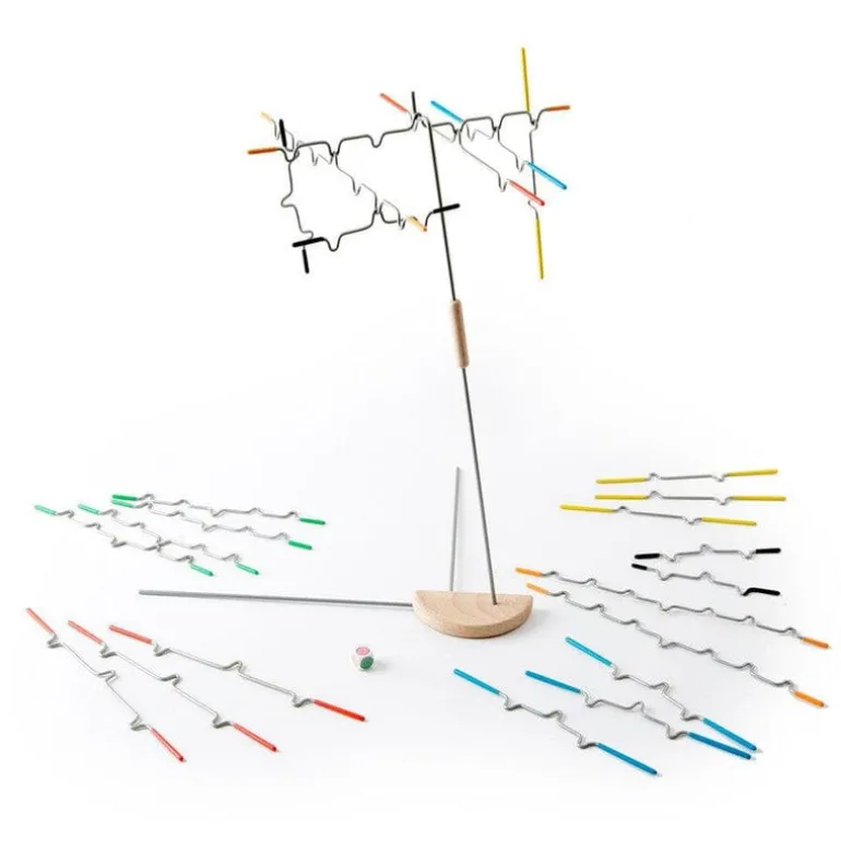 A family game of tricky hangs and steady hands! Try this hanging balance game and you’ll be hooked! Suspend comes with 24 notched, rubber-tipped wire pieces to hang from a tabletop stand. Sound easy? Try adding another piece! Each time a bar is added, the balance shifts, the difficulty changes and the incredible midair sculpture transforms. Can you add all your game pieces without making it fall? This tricky game for 1-4 players is a test of steady nerves and steady hands.