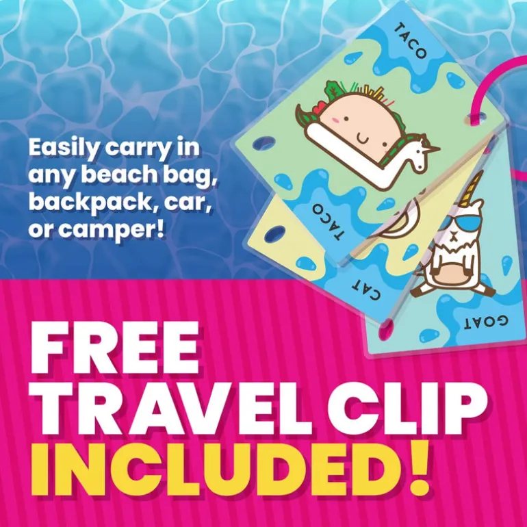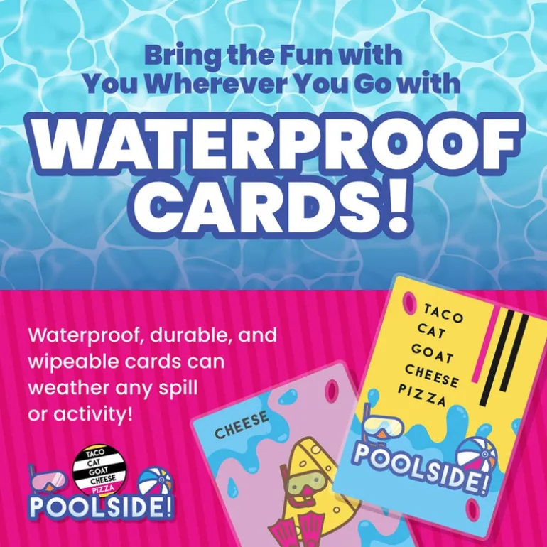 Bring the fun wherever you go with the best-selling card game, Taco Cat Goat Cheese Pizza, now featuring waterproof cards!
