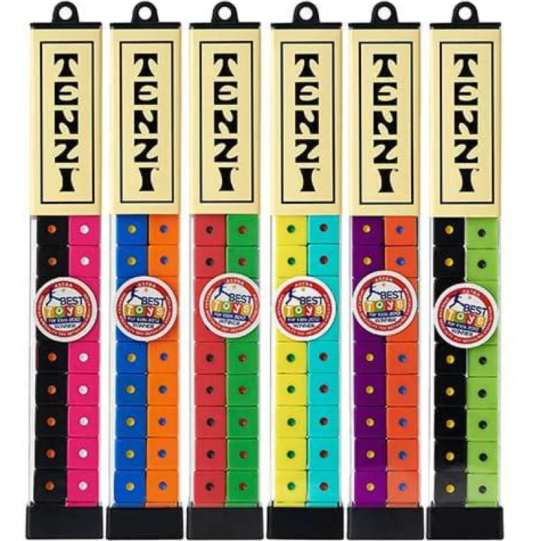 With so many different TENZI color combinations, we can’t guarantee which colors you’ll get, but we can promise a whole lot of TENZI frenzied fun! Each game includes 40 dice (ten each of four different colors), and a rules sheet.
