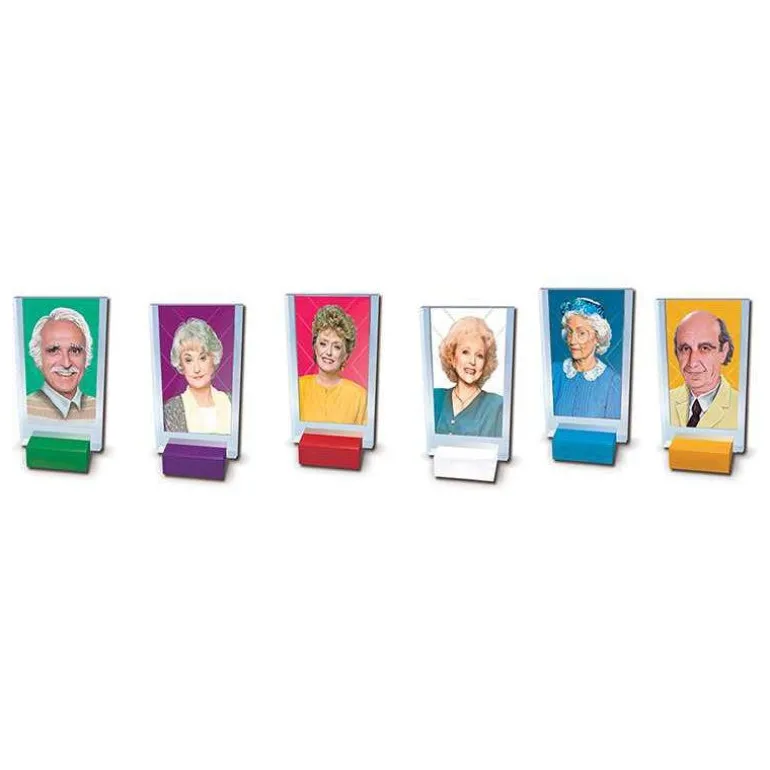 The Golden Girls Clue features a custom illustrated game board, where players attempt to solve the crime of WHO ate the cheesecake, WHAT they left at the scene of the crime, and WHICH room they did it in.