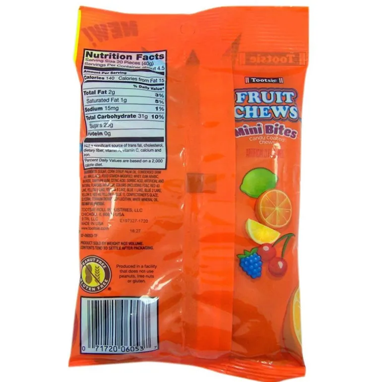Tootsie Roll has done it again — the next generation of Tootsie Rolls is here! These new Fruit Chew Mini Bites are bite-size pieces with the same fruit chew center you love, surrounded by a light candy shell. Pop these little nuggets in your mouth for a new satisfying treat.