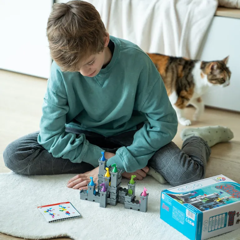- 9 castle-shaped puzzle pieces, challenge booklet with 80 challenges and solutions