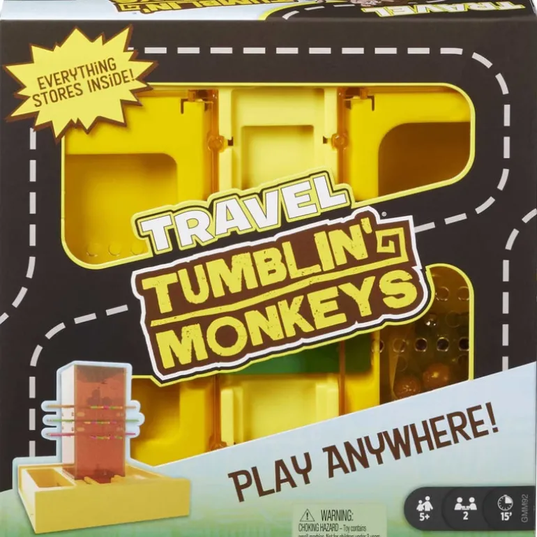 Mattel Travel Games make it easy to take your favorites with you for family fun on the go! Travel Tumblin’ Monkeys™ is all the fun of the classic kids’ game with adorable, monkey-themed game pieces and a base that doubles as built-in storage. Like in original Tumblin’ Monkeys™, keep a steady hand as you pull a stick out of the tower — and don’t let the monkeys tumble! At the end of the game, the player with the fewest pieces dropped is the winner. This travel-friendly version of the family-favorite game features a base that catches the game pieces as they fall and doubles as a convenient, portable storage solution, so you can take the fun with you anywhere! Easy to learn and fun to play, Travel Tumblin’ Monkeys™ is perfect for 5 year olds and up.