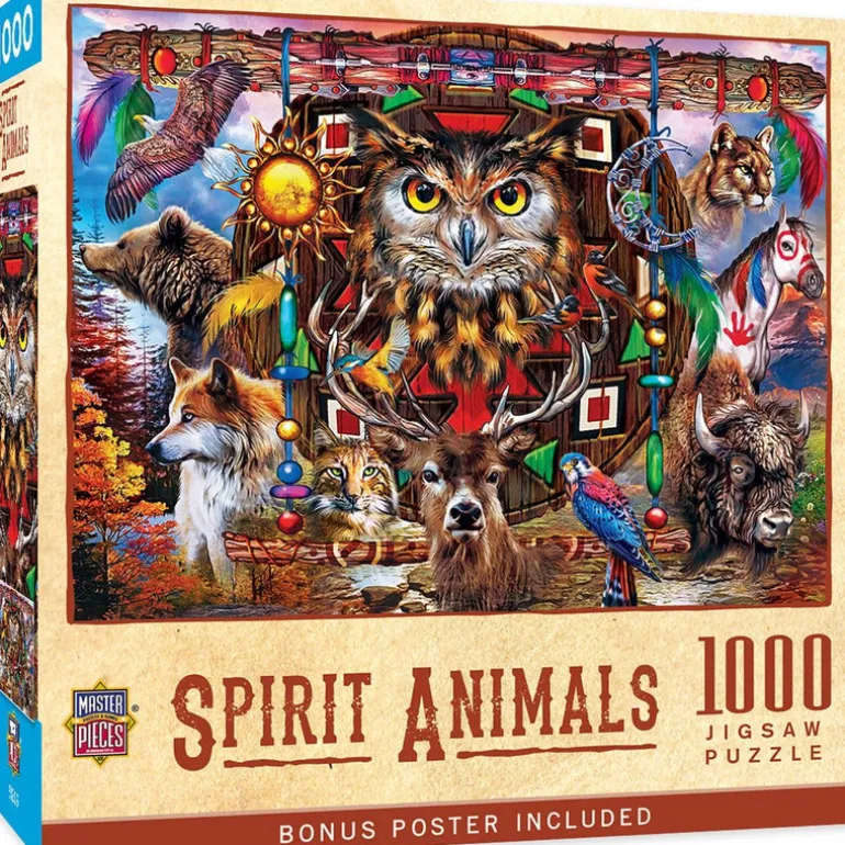 This MasterPieces 19.25″ x 26.75″ 1000pc Tribal Spirit Puzzle pays homage to the rich culture and long history of America’s Native American Indian Tribes. Spirit Animals and totems bring First Peoples culture together. To reduce its impact on our environment, the chipboard used in this puzzle is made of recycled material.