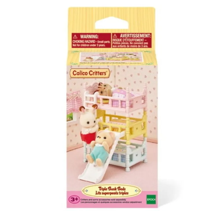 *Furniture set featuring three baby-sized bunk beds with ladders and a slide.