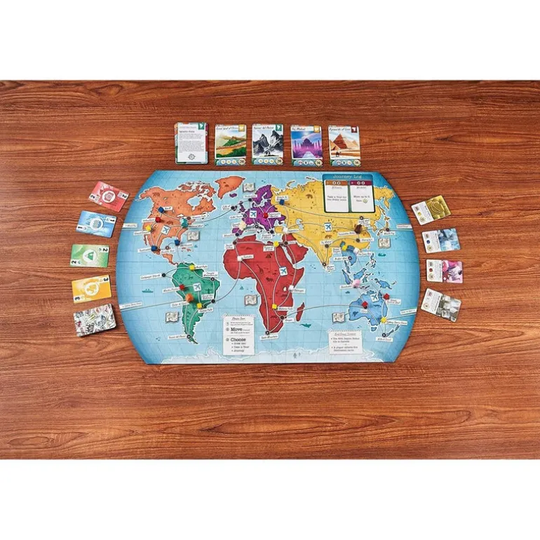 In Trekking the World 2-5 players compete to be the ultimate globe trotter by racing to visit world-renowned locations and collect rare souvenirs along the way. The game spotlights 48 real-world destinations, each beautifully illustrated and accompanied with educational passages to inspire your next getaway.
