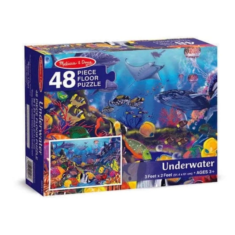 Explore the wonders of the deep blue sea in this vibrantly illustrated cardboard puzzle. 2′ x 3′ when assembled, the 48 extra-thick pieces feature an Easy-Clean surface to keep this undersea puzzle scene looking like new.