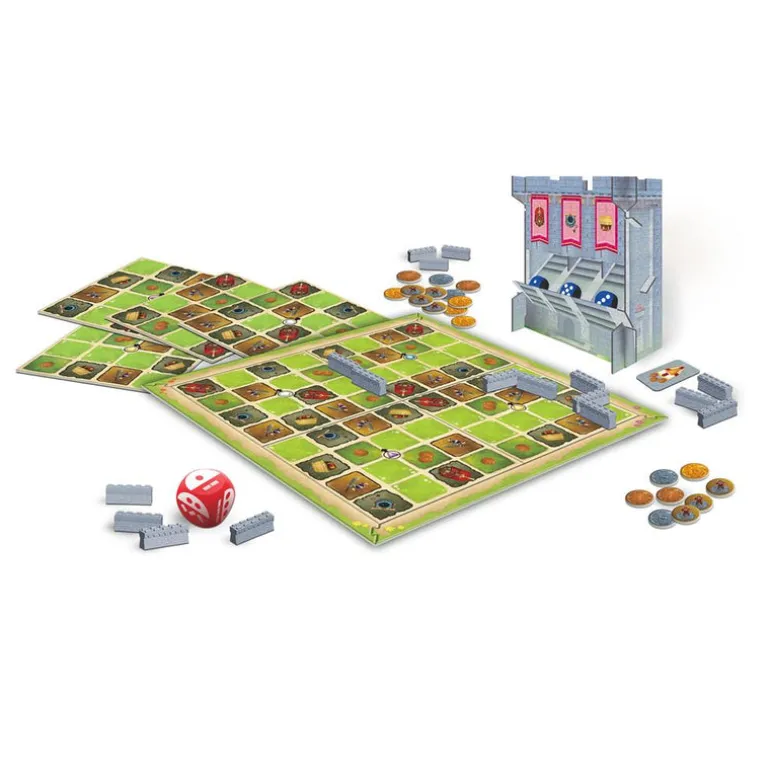 In Walls of York, players must use the plastic wall pieces to construct a defensive barrier around the buildings on their city map. Each turn, a player will roll the Building die, which will dictate what types of walls are to be used. Players must Enclose their city, containing the required buildings from the King’s Decree. But players must beware, for the Vikings will come and lay waste at the end of the first Age, forcing player to build anew in the second Age. The player with the most coins at the end of the second Age is declared the winner.