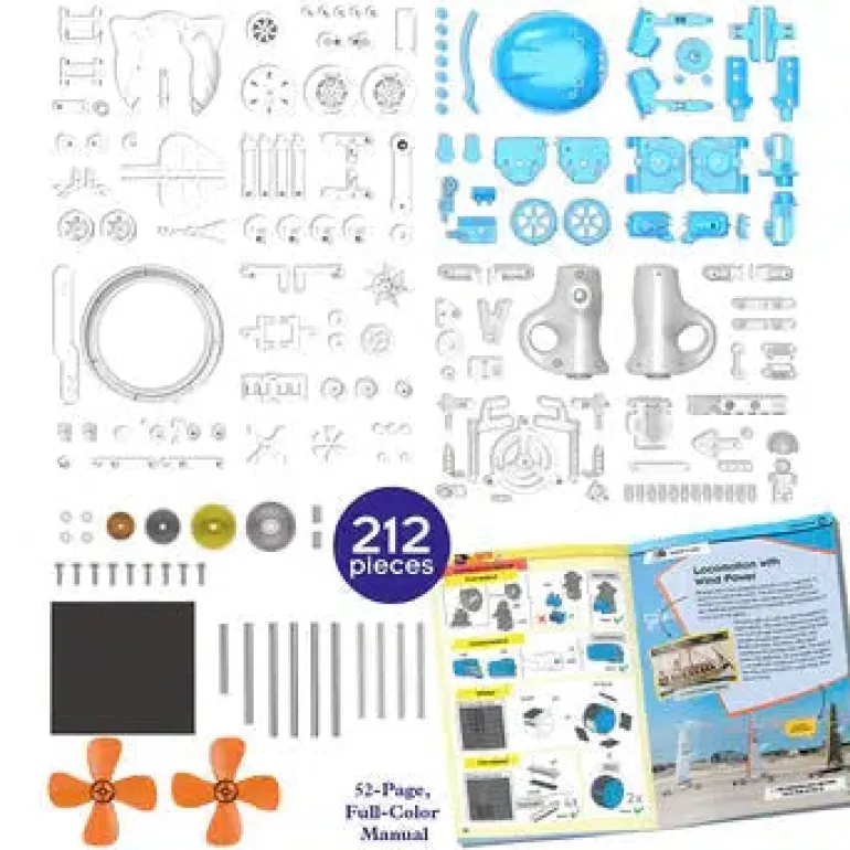 - 6-in-1 engineering kit: build six wind-powered models and a handheld wind generator. Start cranking the generator and watch them go!
