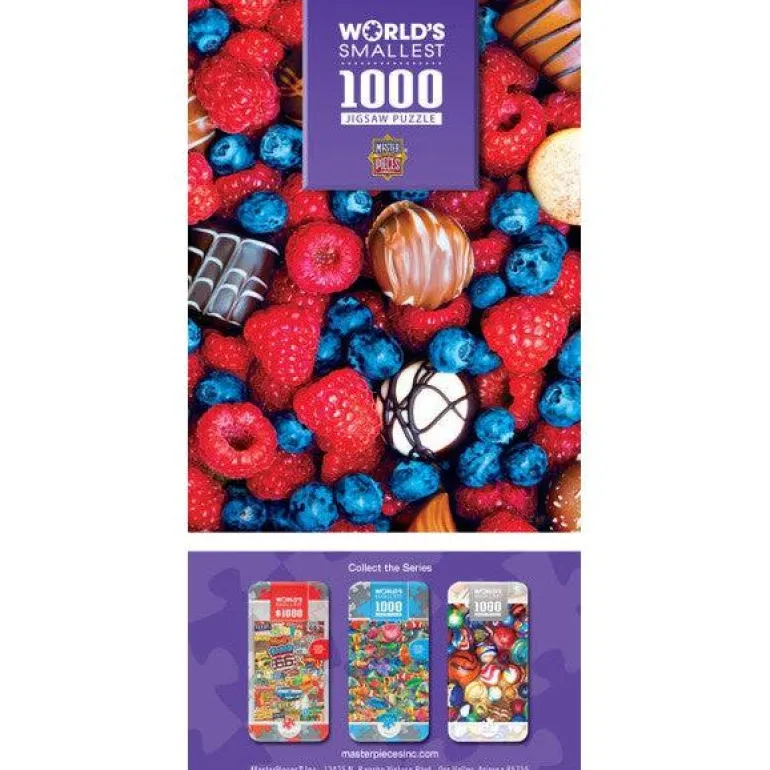 These MasterPieces 11.25″ x 16.75″ World’s Smallest 1000pc Puzzles are designed for both entertainment and ergonomics. Sold in a compact 4″ x 8″ collectible tin box, these puzzles will fit anywhere, and feature beautiful paintings and photography from some of the world’s most talented artists.