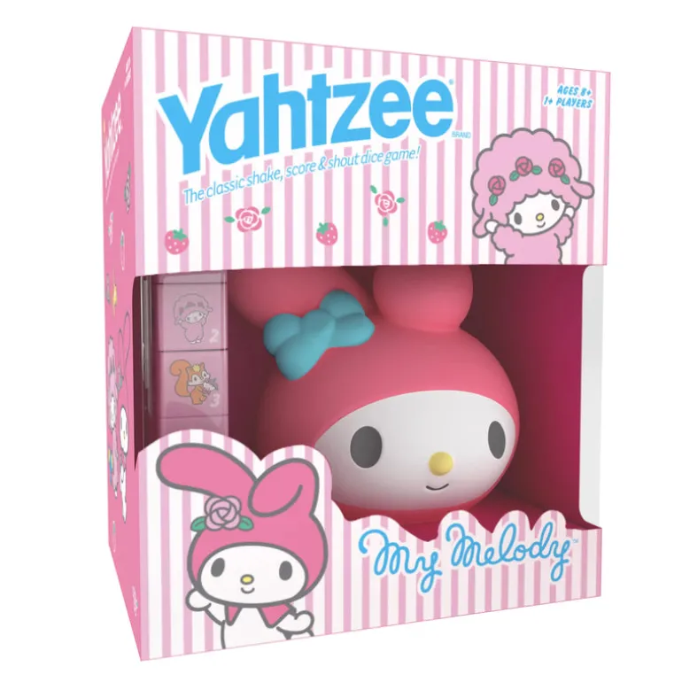 Join My Melody from Hello Kitty and Friends on a fun-filled adventure with YAHTZEE: My Melody! With custom-designed dice, adorable artwork, and a custom My Melody dice cup with a bow on her hood, this Yahtzee will delight fans of all ages.