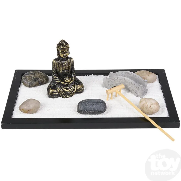 The Toy Network Zen Garden Set comes with a box full of sand, 7 pieces, and a rake to create a unique scenery. Great for decoration and design. Very calming.